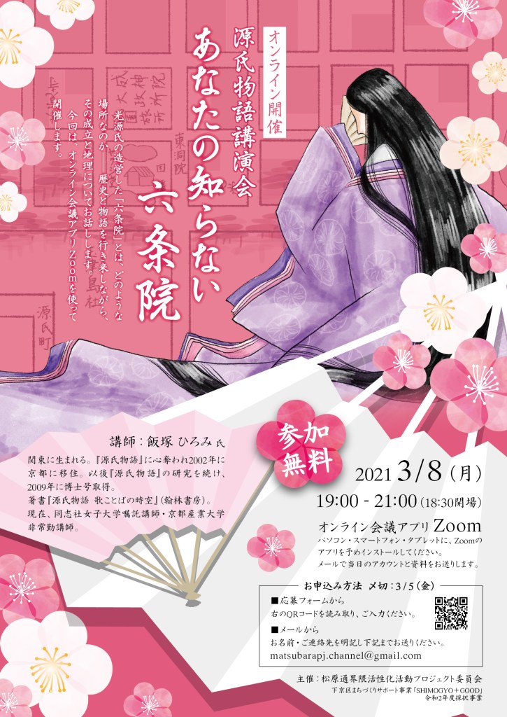源氏物語講演会「あなたの知らない六条院」チラシ制作 03/08/2107/29/25 | chiakiohtake 源氏物語の舞台にもなっていた京都の松原通界隈。その活性化プロジェクトの一環として開催される講演会のチラシを制作させていただきました。 イベントページ