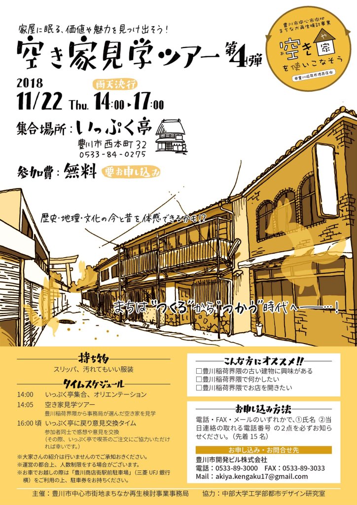 豊川市中心市街地におけるまちなか再生検討事業の一環として、豊川稲荷の周辺で空き家を活用につなげるための企画です。